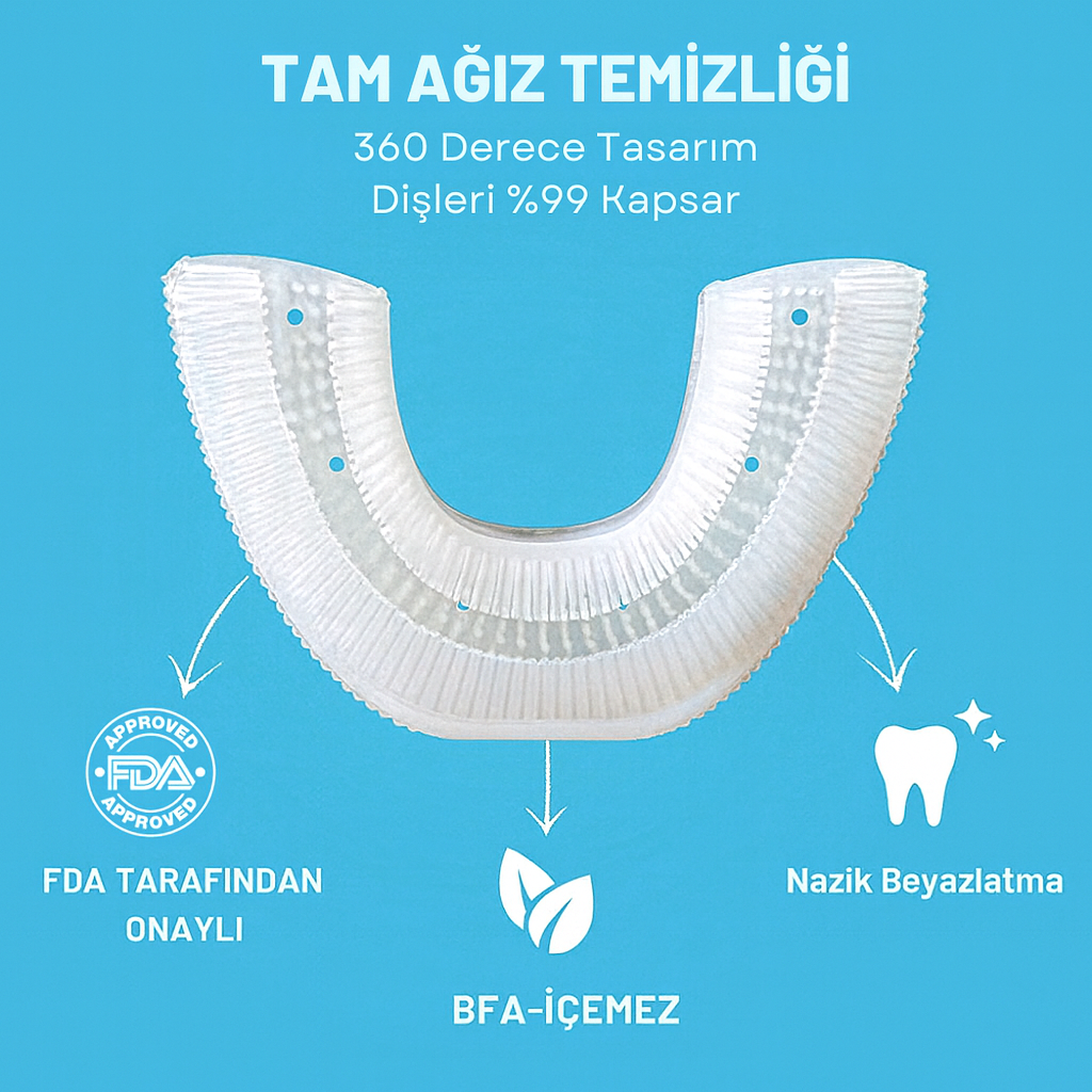 Tıbbi Silikon Başlık: Yumuşak ve antibakteriyel silikon yapısıyla diş minesine zarar vermez, aynı zamanda diş etlerini nazikçe masaj yaparak kan dolaşımını destekler.